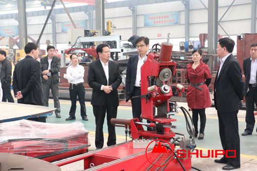 2014年4月22日10時(shí),濟(jì)寧市市政府石中和副市長一行在市縣領(lǐng)導(dǎo)的陪同下,來公司進(jìn)行視察、調(diào)研。公司劉憲福董事長向石中和副市長,詳細(xì)介紹了“無模板異形封頭自動旋邊機(jī)”、“數(shù)控封頭旋壓機(jī)”、“數(shù)控廂板自動焊接機(jī)”、“異形罐體環(huán)縫TIG自動焊機(jī)”等多個(gè)公司自主研發(fā)的新產(chǎn)品。石市長詳細(xì)詢問了公司的運(yùn)作狀況和發(fā)展前景,并鼓勵(lì)公司開拓進(jìn)取,積極創(chuàng)新,不斷打造出高科技、高性能的產(chǎn)品。